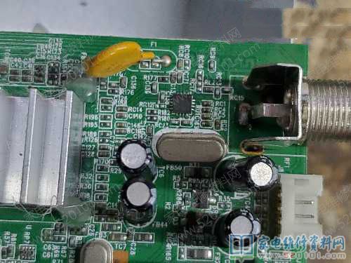 接着排查,1117测试正常,怀疑是不是F头旁27.000晶振问题?之前就碰一台晶振坏导致信号方面问题,难不成又捡漏了?更换后,故障依旧,怀疑是不是v2028问题?这个我印象中坏就坏,不坏就不坏,很少。排除,难不成主控虚焊?当真不像。一头莫展之中,主板电容测量一遍都正常,无短路等不正常情况。