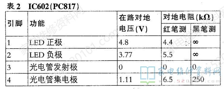 本文附表中所列相关数据的测量条件解释如下:表1~表3中电阻值在电源负载开路状态下用MF-10型万用表RX1k挡测得;表4中的电阻值用MF-10型万用表RX1挡测得;表5~表10中的电阻值用MF-10型万用表RX1k挡测得;表1~表10中的电压值用数字万用表VC9805A测得。