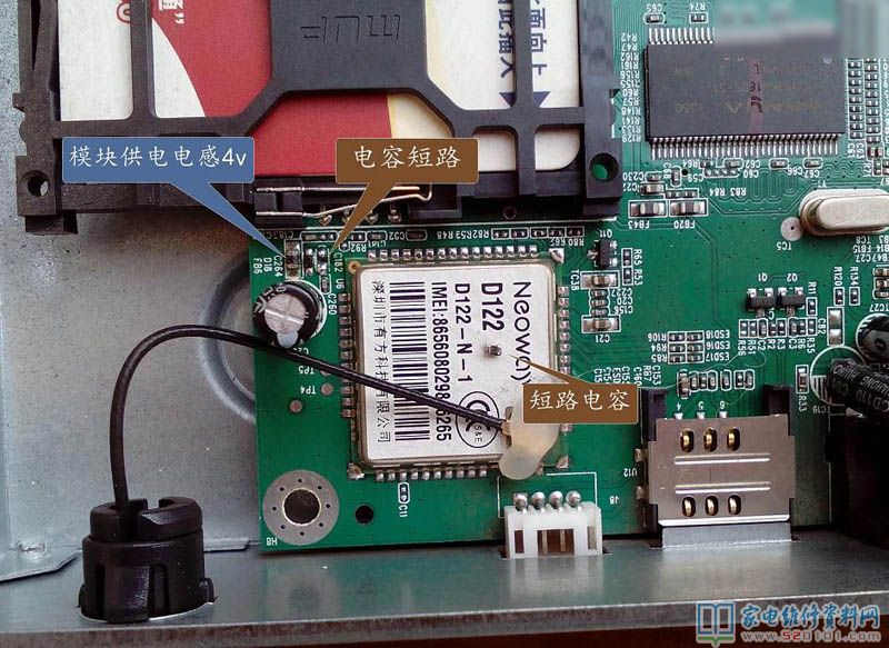 接修到两台科瑞发户户通,故障都是黑屏现象,拆开机器,测量5v电压很低,后来用烧机法(透过加大电流方法,让元器件超负荷运作,以达到找到潜在故障元器件的目的)找出贴片电容短路(如下图3所示),遇到两台了。特发上来分享给各位网友,以免少走弯路。