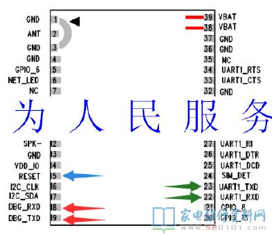 小板黄色线接签名模块的D_RXD18脚(正常有2.8-3V电压)