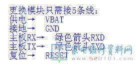 更换模块只需接5条线, 供电 接地 主板RX 主板TX 复位