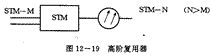 STM有两类。一类提供G.703接口到STM-N的复用功能,如图12-18所示,它代替了PDH中一 连串背靠背的复用器。这类复用设备具有VC1/2/3或VC3/4通道连接功能,能将输入支路 信号灵活地分配到STM-N帧内的任何位置。另一类是高阶复用器,如图12-19所示它将低阶 STM信号复用成更高阶的STM信号。