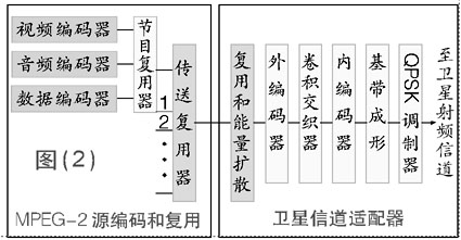 DVB-S系统的标准描述了用于卫星数字多路传输的帧结构、信道编码和调制方式。在卫星传输系统中上行信号的组织流程和框图如下: