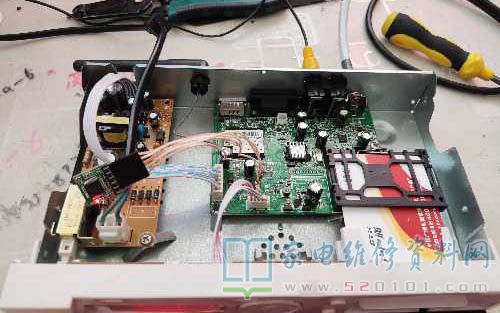 上门去一客户家里维修户户通,故障现象是显示T01信号中断,通电开机无信号,拿回检修发现电源板好几个电容鼓包,更换后依旧无信号,但左右旋电压正常,检查周围电路也没发现异常,直接更换AV2028芯片。终于不在显示T01了,故障修复。