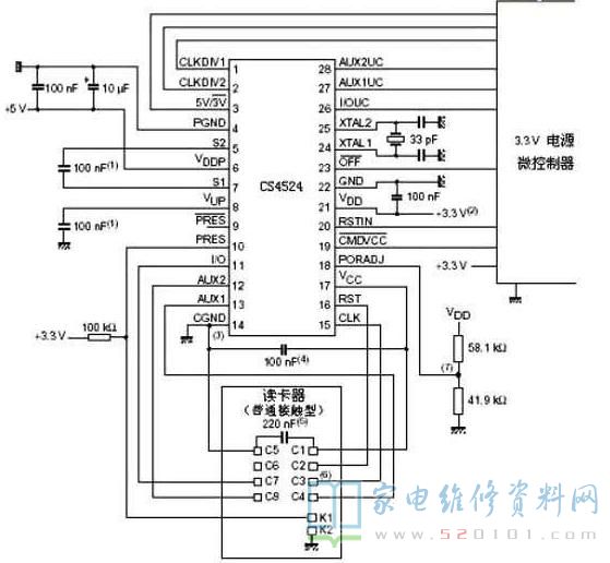 一台卓异ZY-5518AG卫星接收机,开机,前面板数码管无显示,无图像,无伴音。查电源板输出的3.3V、15V、19V电压均正常,重新写入正确的BIN文件,故障依旧,判断故障应是主板硬件故障引起。通常主板上大部分芯片在正常工作时...