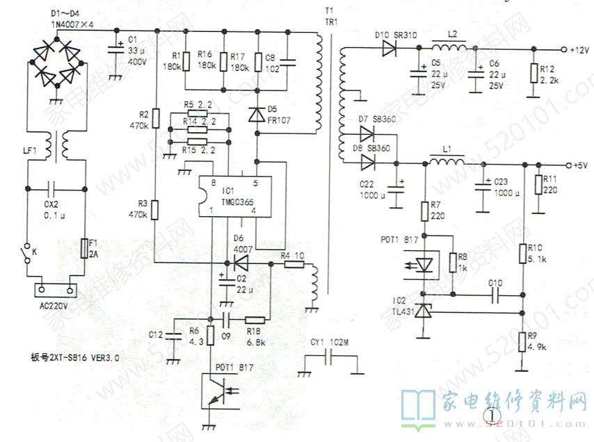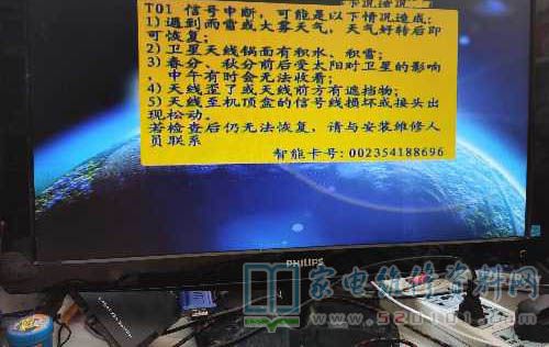 上门去一客户家里维修户户通,故障现象是显示T01信号中断,通电开机无信号,拿回检修发现电源板好几个电容鼓包,更换后依旧无信号,但左右旋电压正常,检查周围电路也没发现异常,直接更换AV2028芯片。终于不在显示T01了,故障修复。 ...