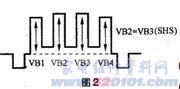 (1)置于全屏幕(FULL)方式,接收NTSC制彩条信号,将图像调到80%,彩色调到50%,色调调到500/0。(2)将示波器探头接D板的CN508的7脚。(3)置于维修模式。(4)用“1”或“4”键分别选择调整项目SHS(编号26),操作“3”和“6”键,使VB2=VB3,如图2所示。(5)用“MUTE”键和“0”键写入存储器。