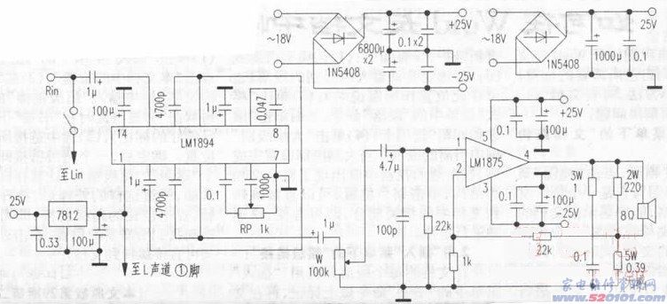 功放电路采用“LM1894+LM1875”方案,该电路有以下特点:
