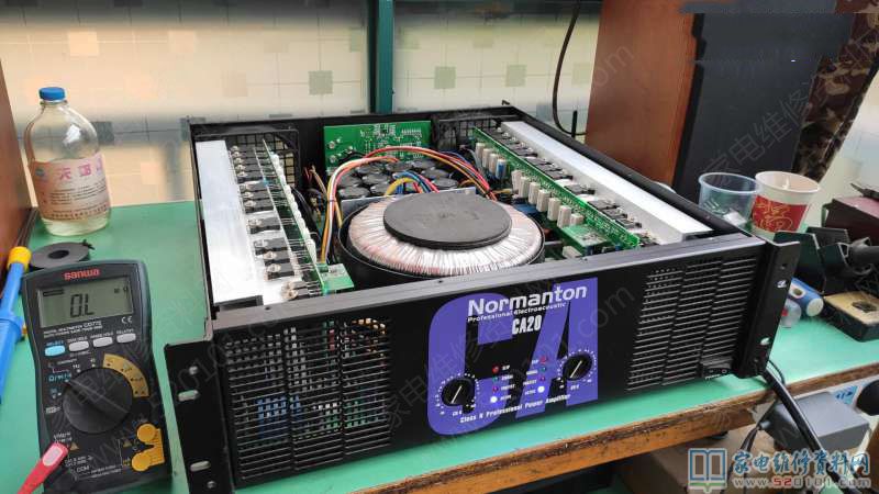 Normanton牌CA20型H类专业功放开机不通电的故障维修
