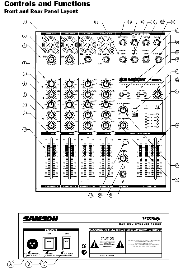 MDR6专业调音台features(功能特性): 6通道混音器SAMSON MDR6,是现场声音、录音、固定设备和后期制作等多方面应用的全能解决方案。这是其部分主要功能特性: ·6通道——2路麦克风/线路输入和2路立体声输入。 ·灵活的设计技术理念适合...